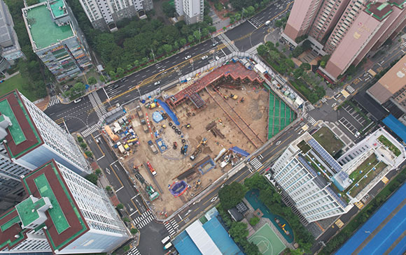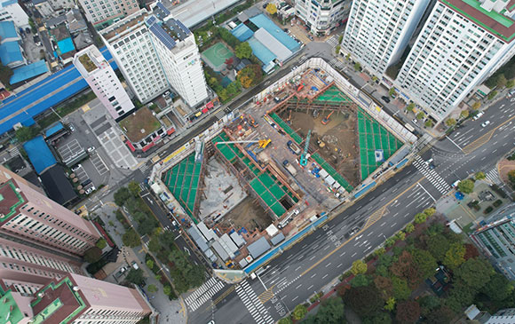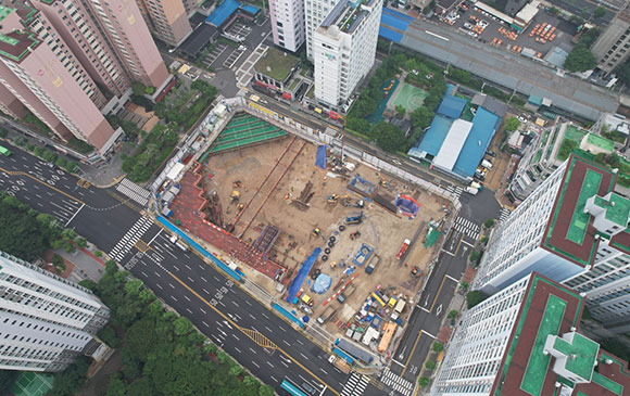 ■ 토공 및 흙막이 공사 : 토사 반출 및 Strut 설치, 복공판 작업