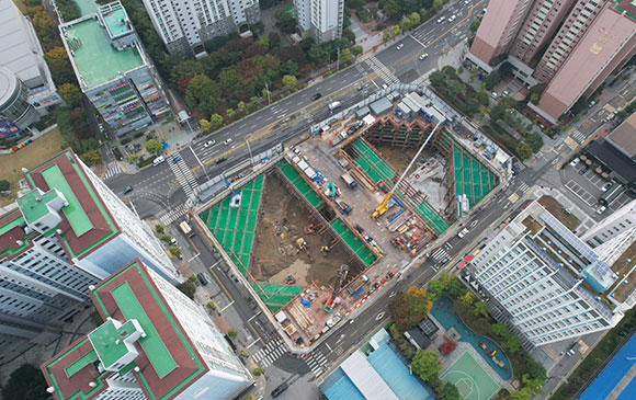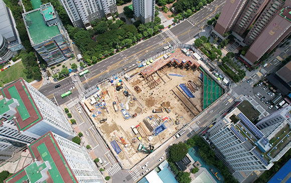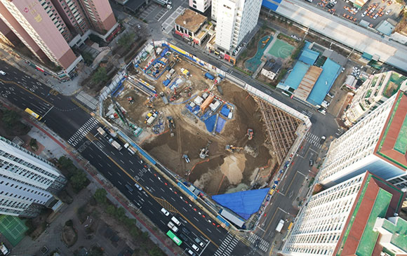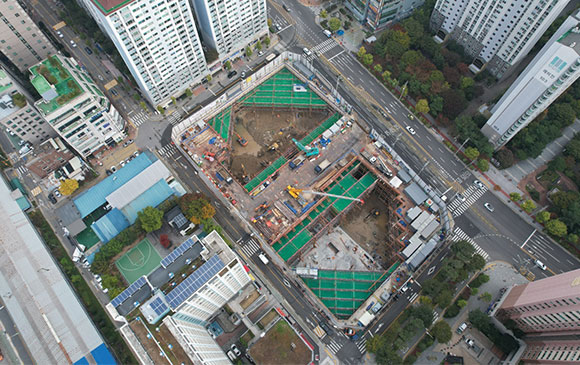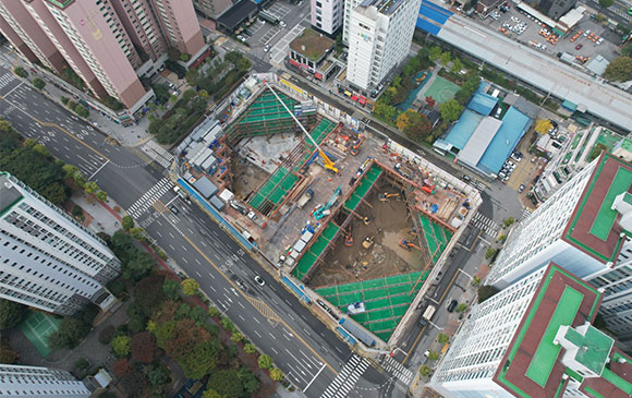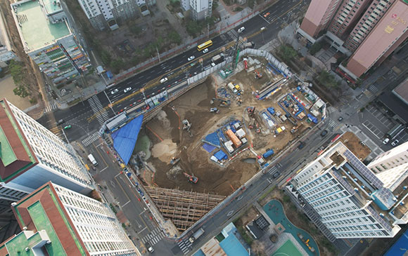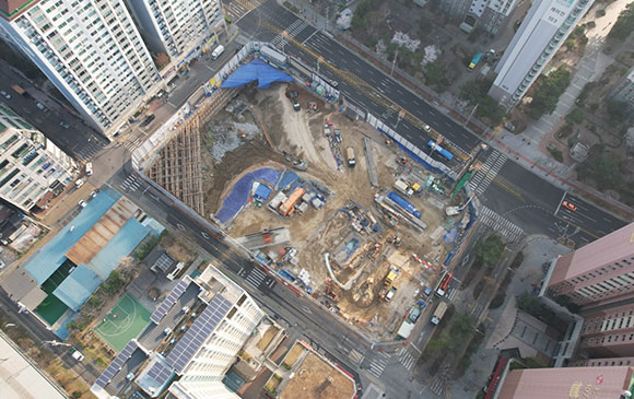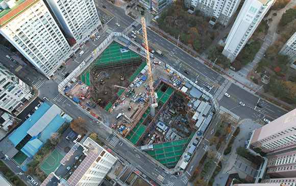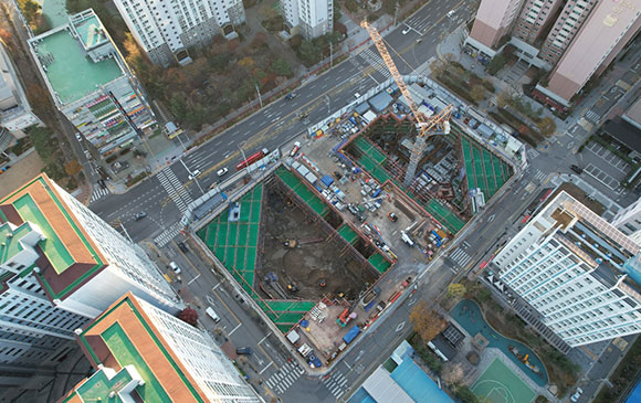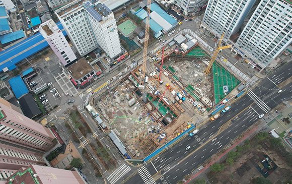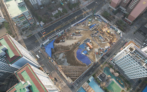 당 현장은 2021년 11월 착공하여 현재 철거공사, 토공 흙막이공사를 진행하고 있습니다.