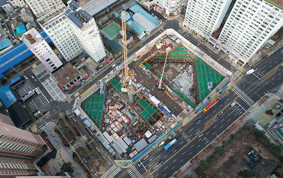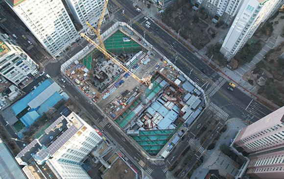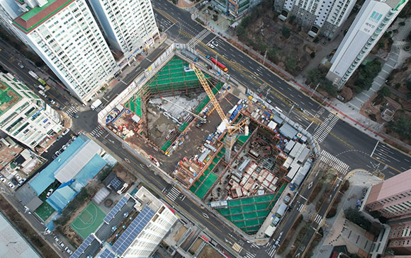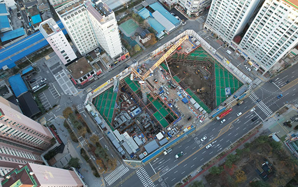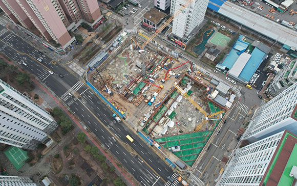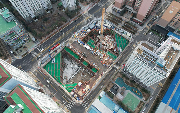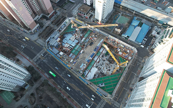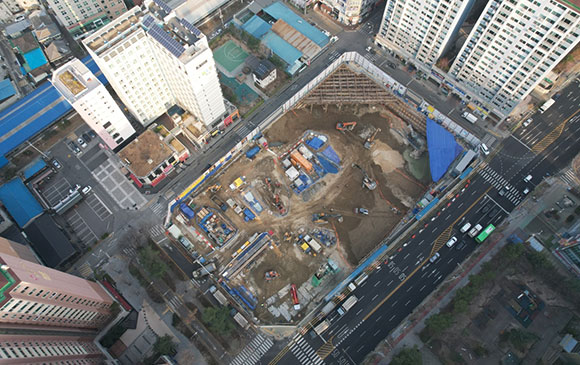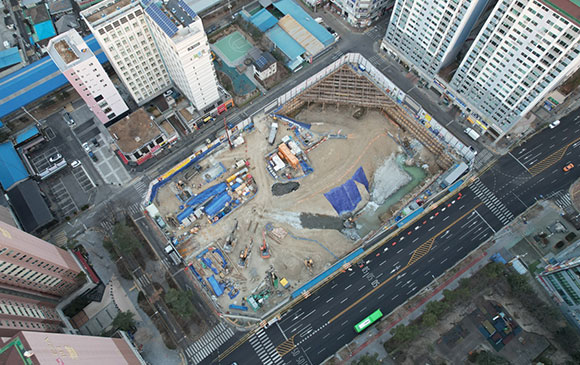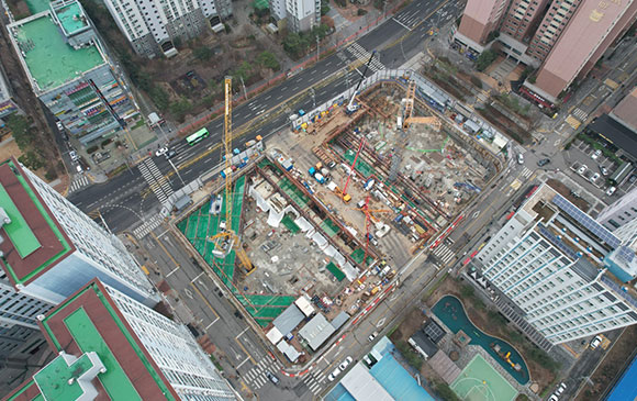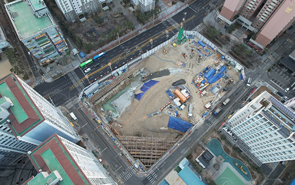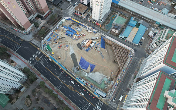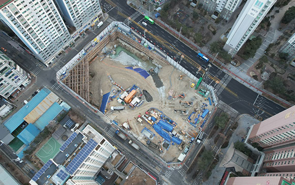 당 현장은 2021년 11월 착공하여 현재 토공 흙막이 공사를 진행하고 있습니다.