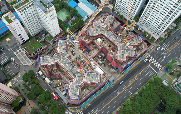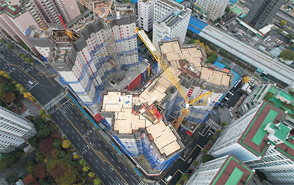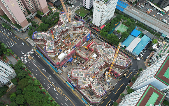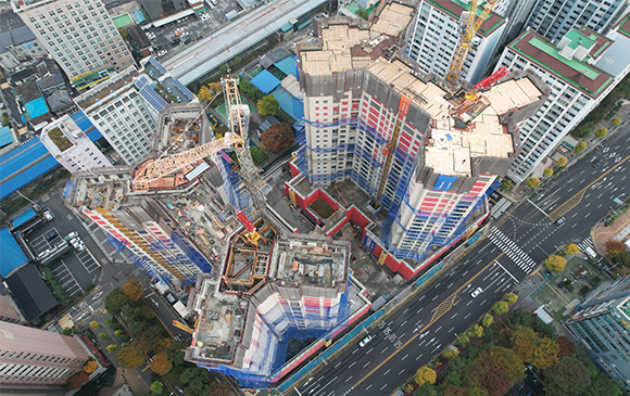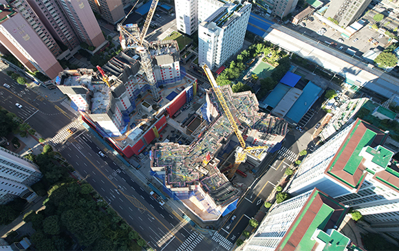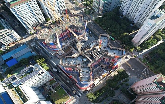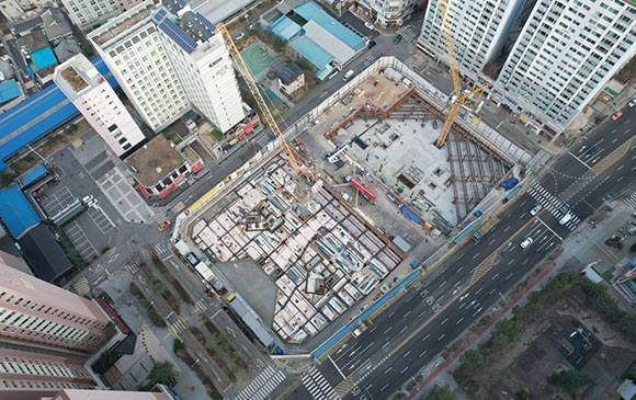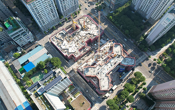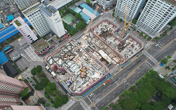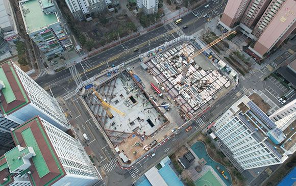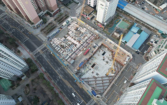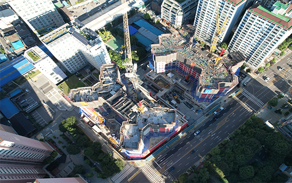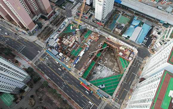 당 현장은 2021년 11월 착공하여 현재 골조공사 및 주차장 마감공사를 진행하고 있습니다.