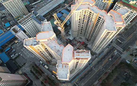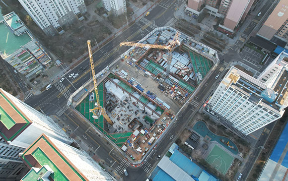 당 현장은 2021년 11월 착공하여 현재 APT골조공사 및 주차장 마감공사를 진행하고 있습니다.