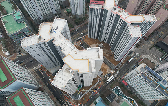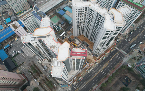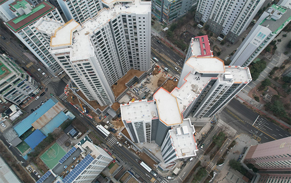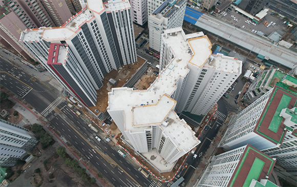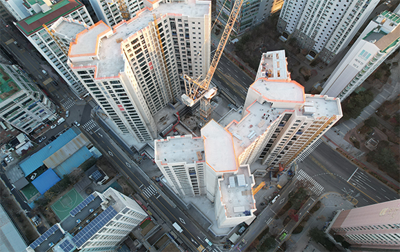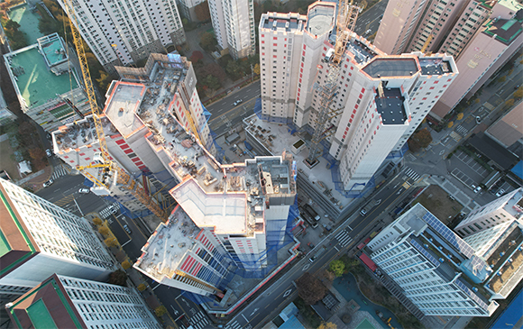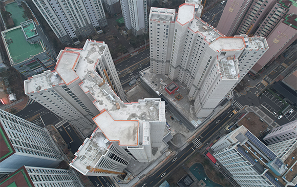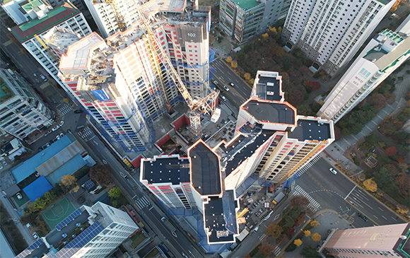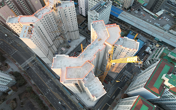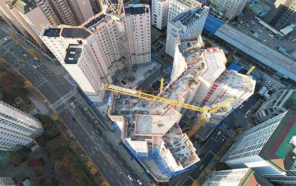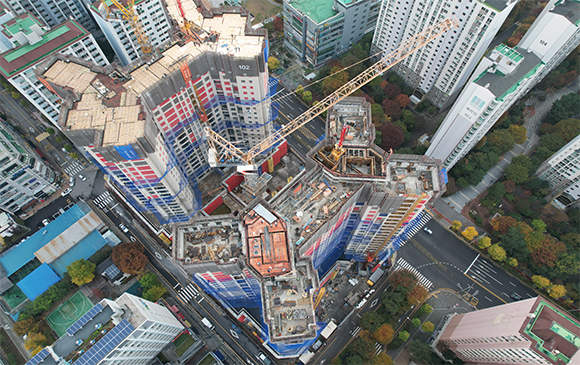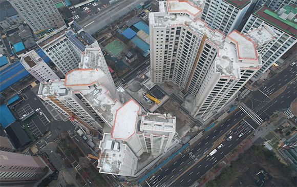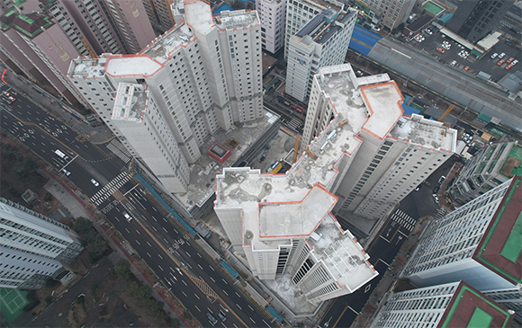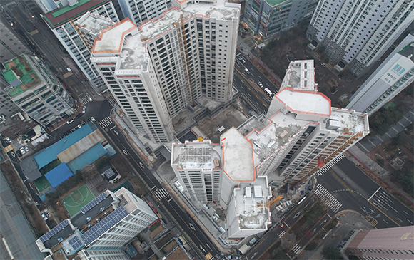 - 101동 지상 골조 완료 및 외벽 견축 작업