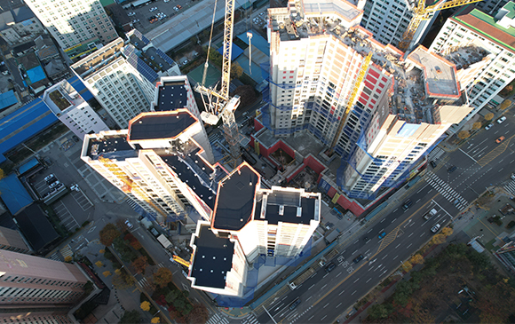 당 현장은 2021년 11월 착공하여 현재 APT 및 주차장, 부속동, 세대 마감공사를 진행하고 있습니다.