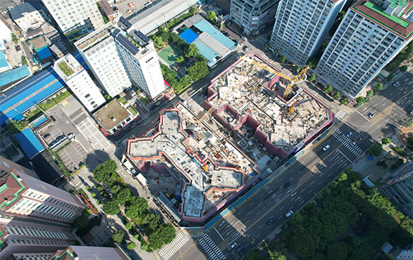 당 현장은 2021년 11월 착공하여 현재 철거공사, 골조공사를 진행하고 있습니다.