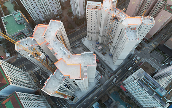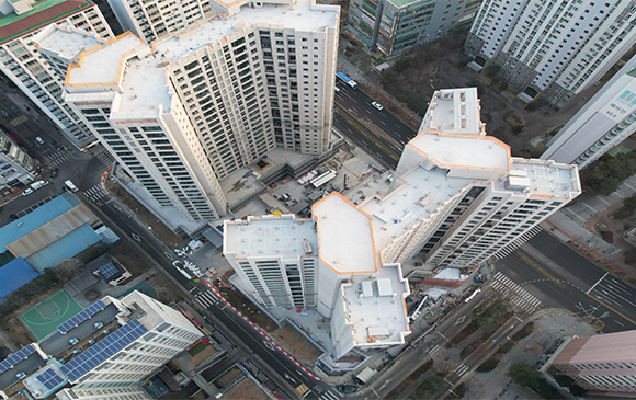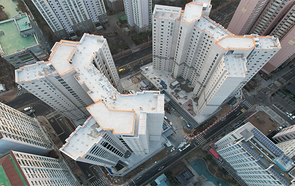 - 102동 지상 골조 완료 및 외벽 견출 작업