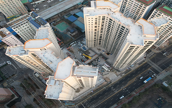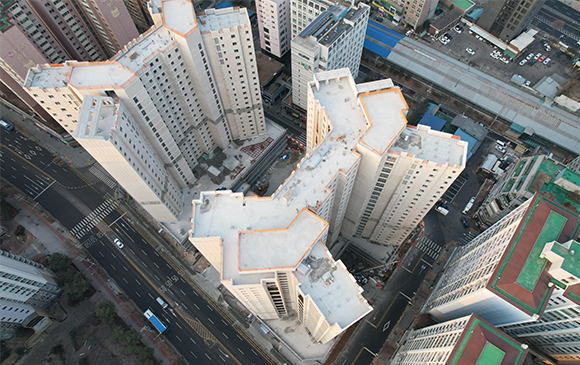 - 102동 지상 외벽 도장 작업 및 세대 마감작업