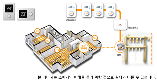 ▷ 각방에 온도조절기를 설치하여 필요에 따라 적정온도 설정이 가능하기 때문에 보다 쾌적하고 경제적임.