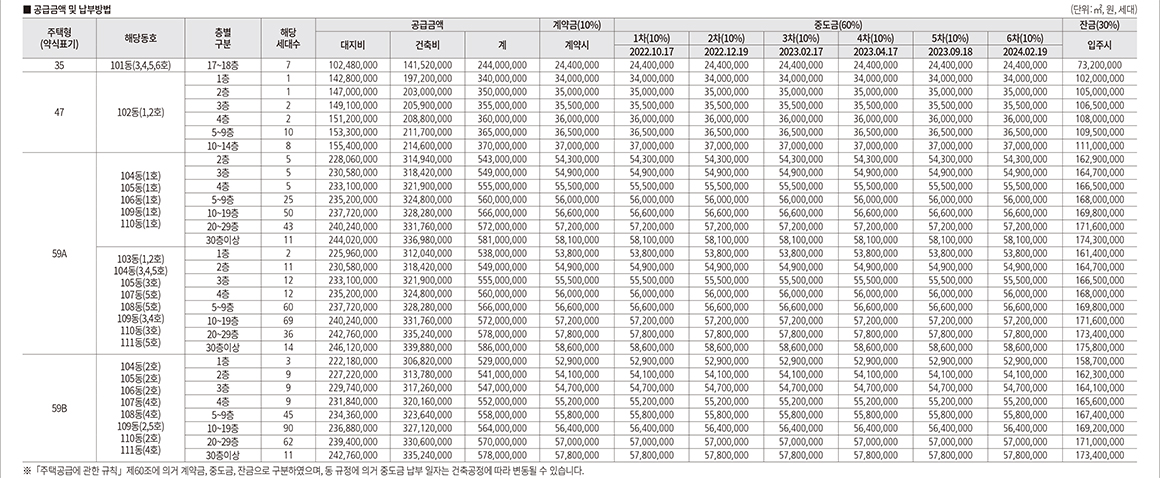 공급금액 및 납부일정