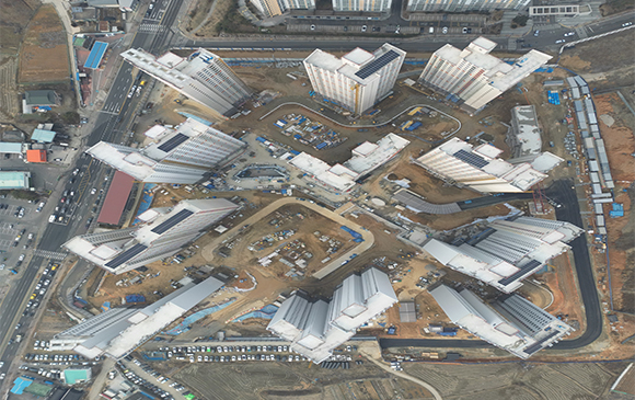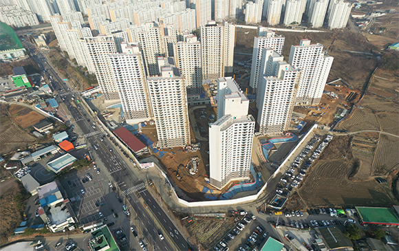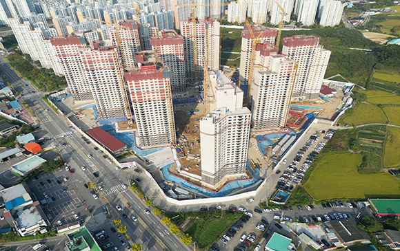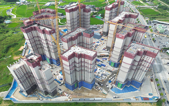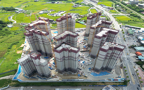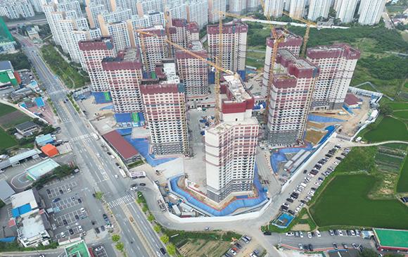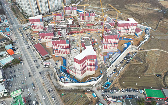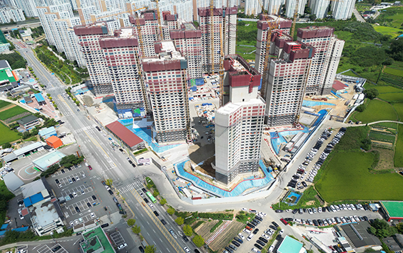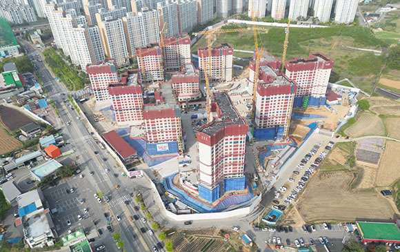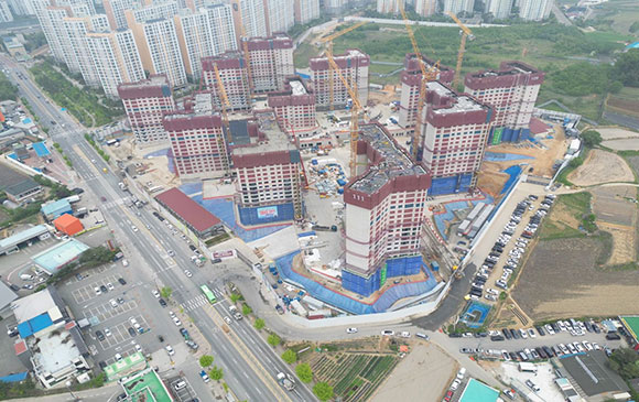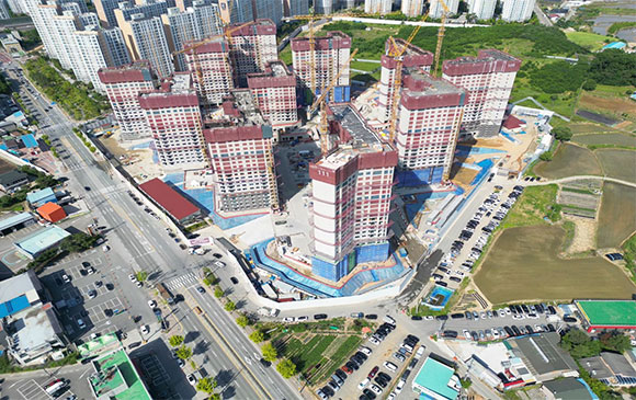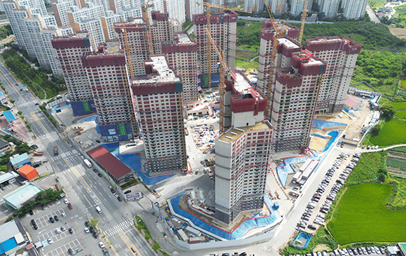 아파트는 지상층 철근콘크리트공사를 진행중입니다.