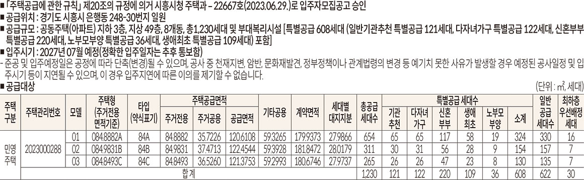 시흥 롯데캐슬 시그니처(1BL) 입주자 모집공고.pdf공급내역
