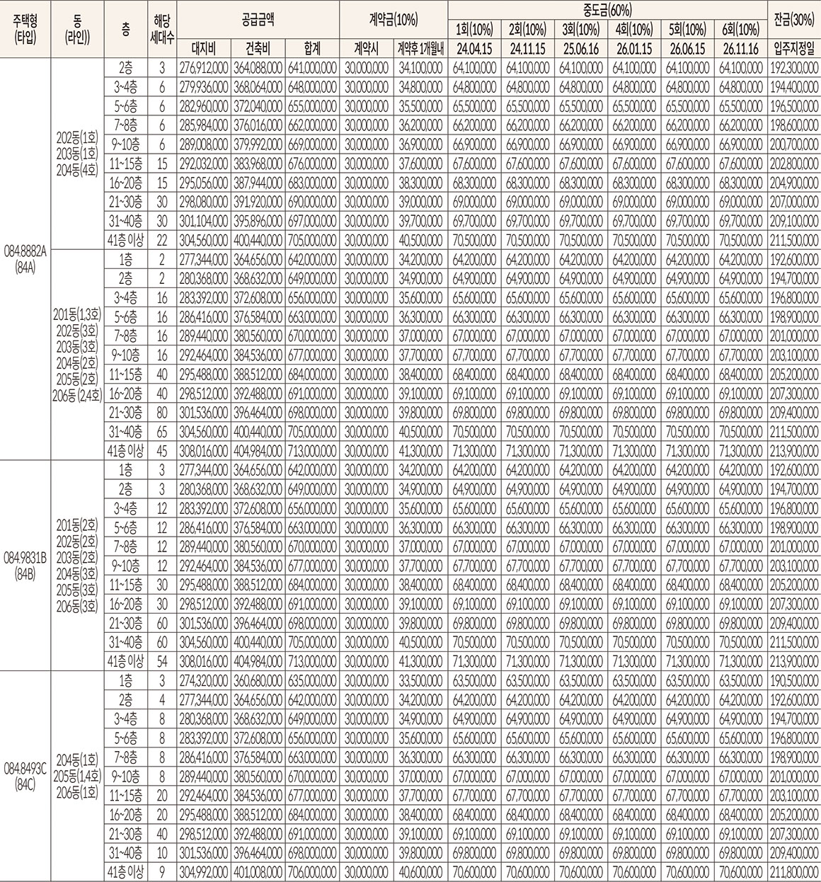 공급금액 및 납부일정