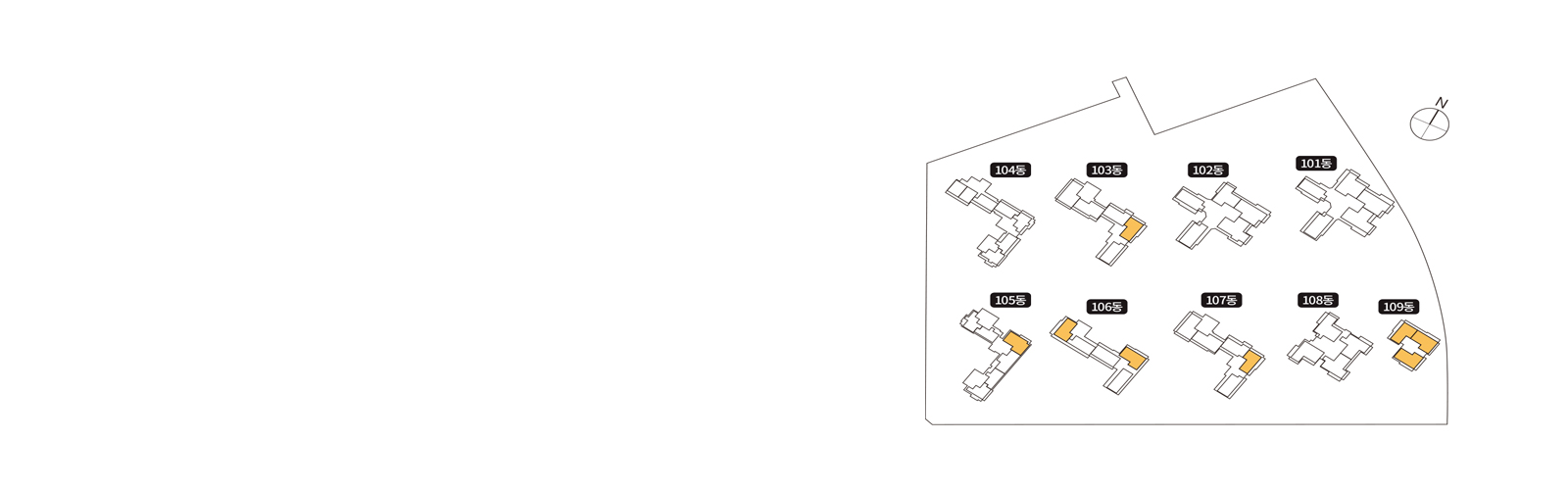 ※ 일부세대는 대칭형으로도 시공되어 일부 거실, 안방, 침실, 주방의 향이 달라질 수 있으니 필히 확인하시기 바랍니다.