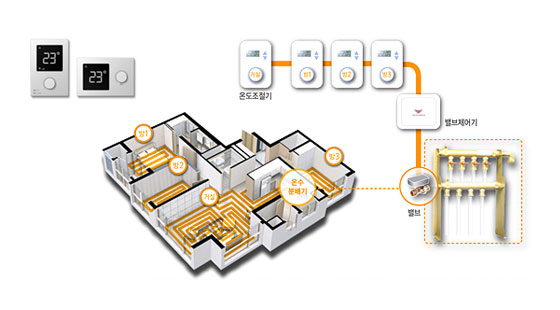 - 각 방에 온도 조절기를 설치하여 필요에 따라 적정 온도 설정이
