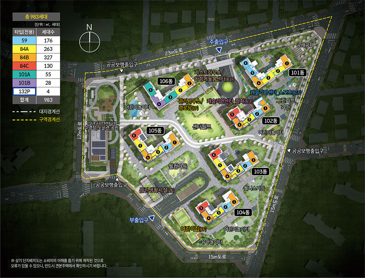 동·호수별 조망과 일조차이가 상이하오니, 계약시 필히 확인하시기 바랍니다.