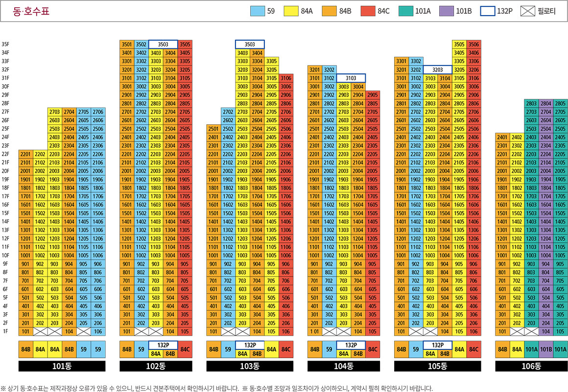 상기 동·호수표는 제작과정상 오류가 있을 수 있으니, 반드시 견본주택에서 확인하시기 바랍니다.
