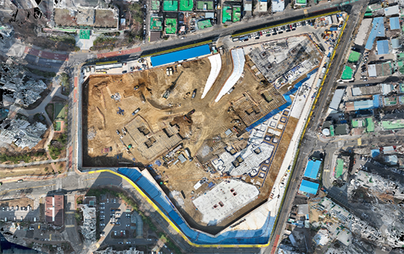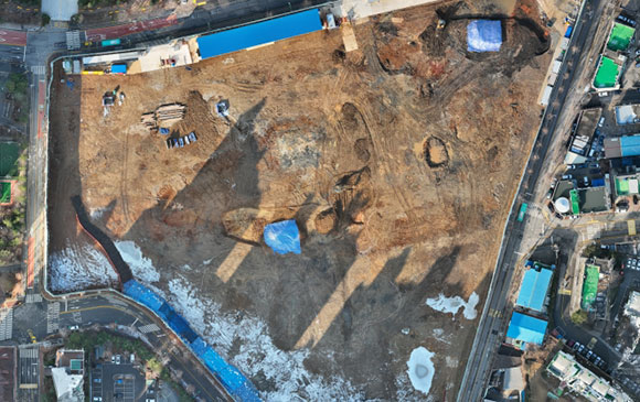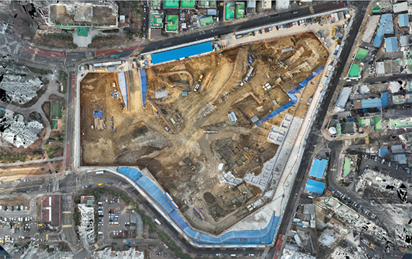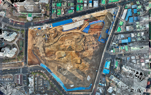 굴착이 완료된 구역부터 동 기초파일 시공을 준비하고 있습니다.