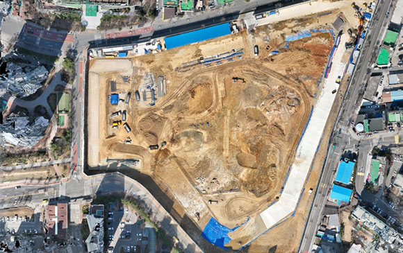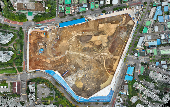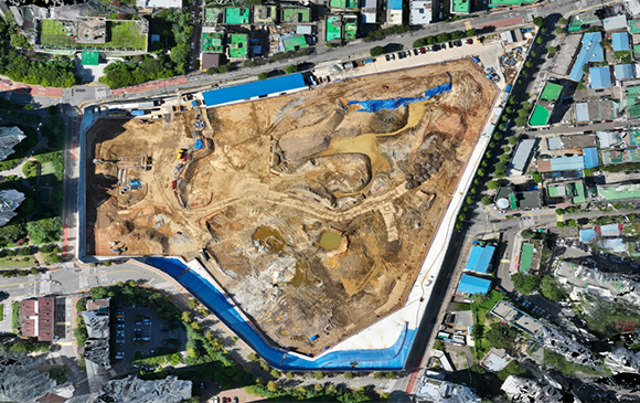 현재 토사굴착 및 반출작업을 진행하고 있으며, 여름 집중호우에 대비한 안전대책을 완비한 가운데 안전하게 공사 진행하고 있습니다.
