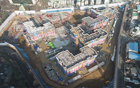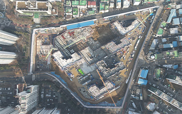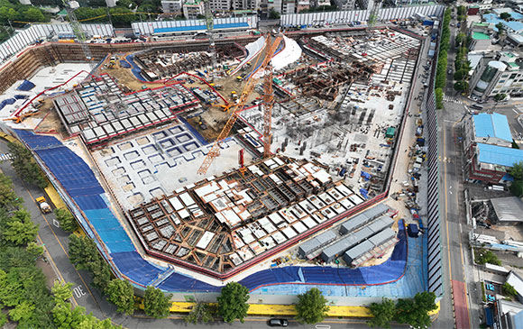 현재 기초타설 및 지하주차장 골조공사가 진행중입니다.