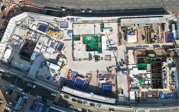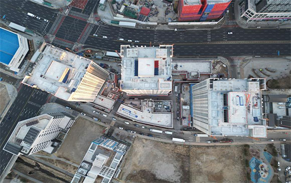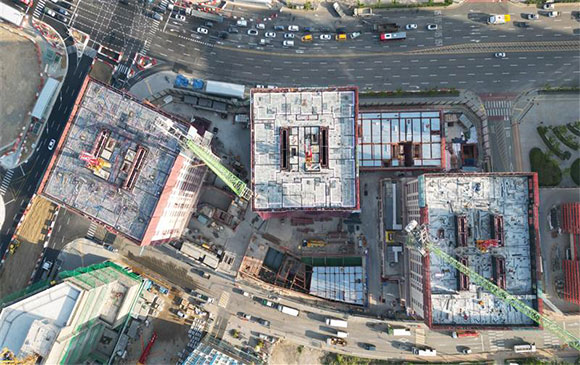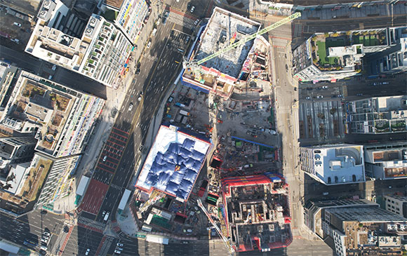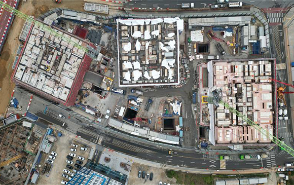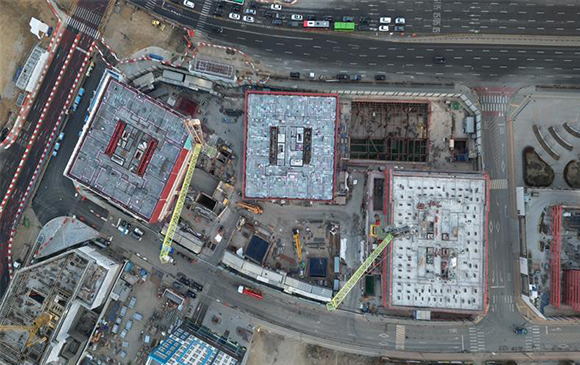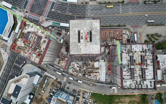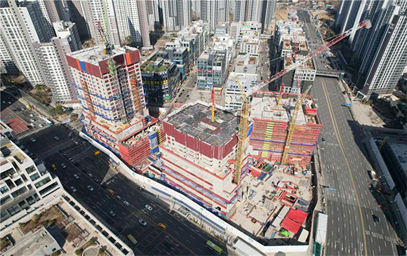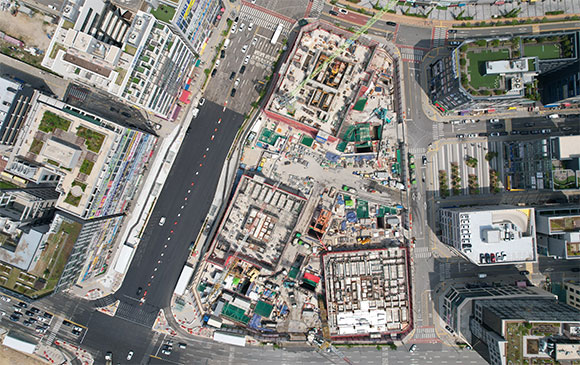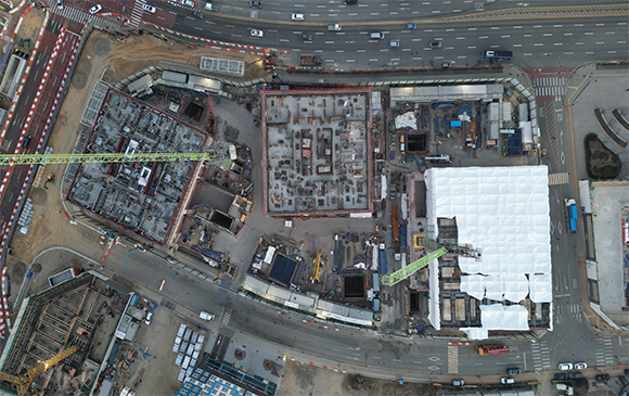 ① B2F Deck-plate 설치 ① B1F 역Raker 설치, 1F 메인 철골 설치