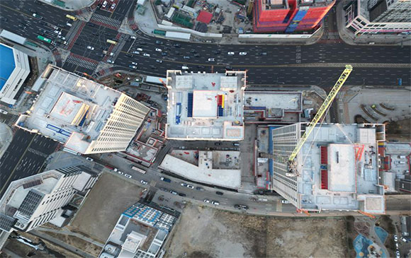① B4F Deck-plate 설치 ① B1F 바닥철골 설치 中