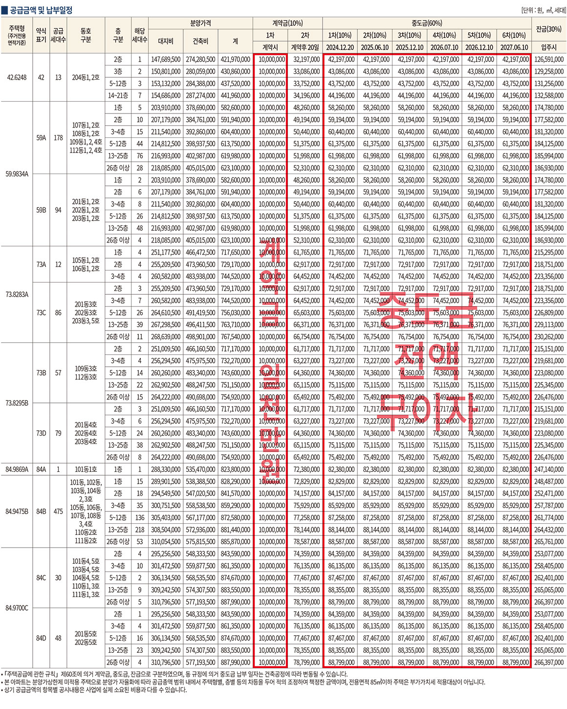 공급금액 및 납부일정