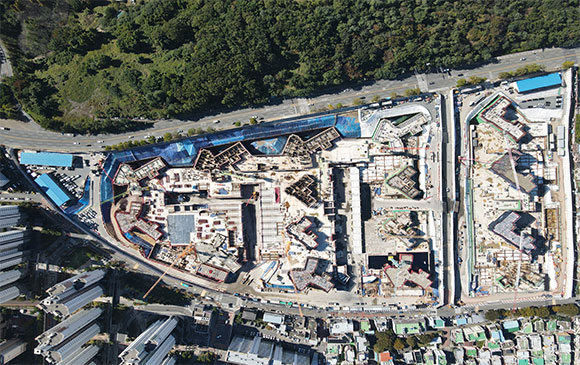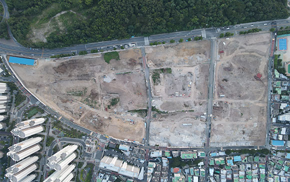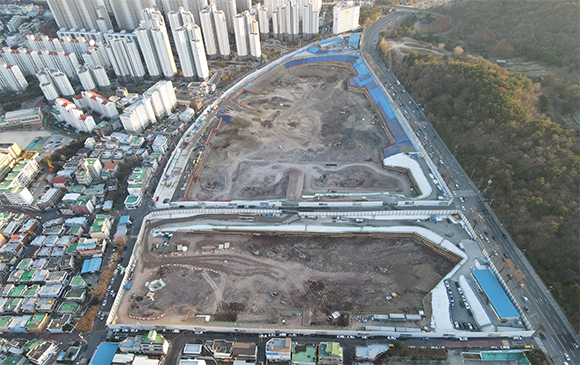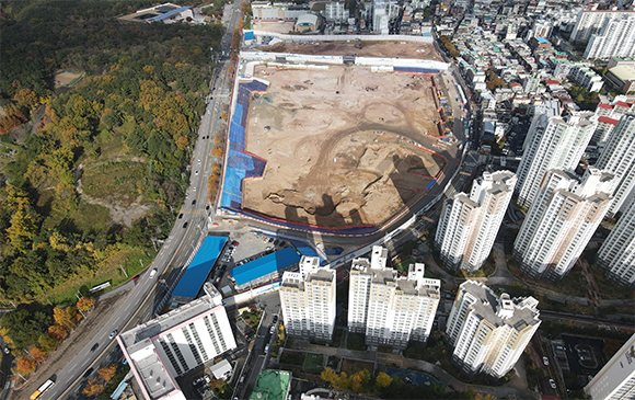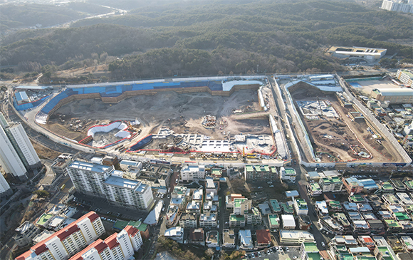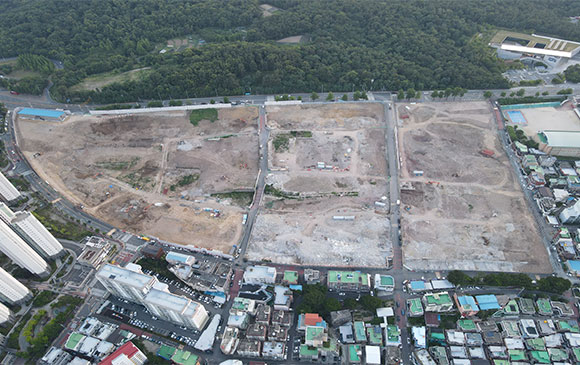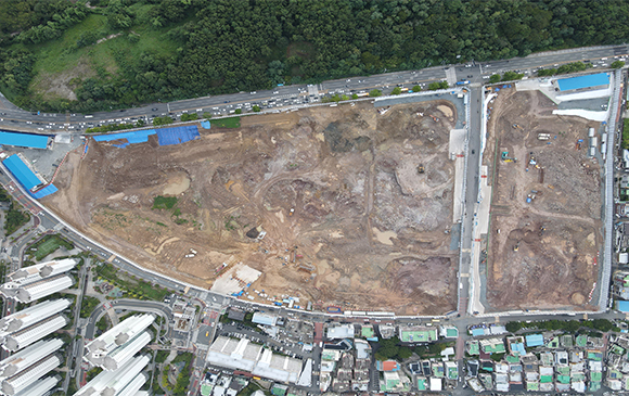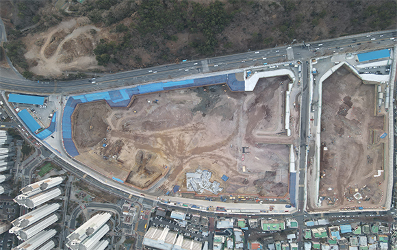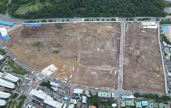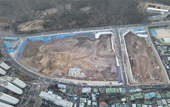 -. 단지 내부 부지 정리 및 가설도로 개설 중